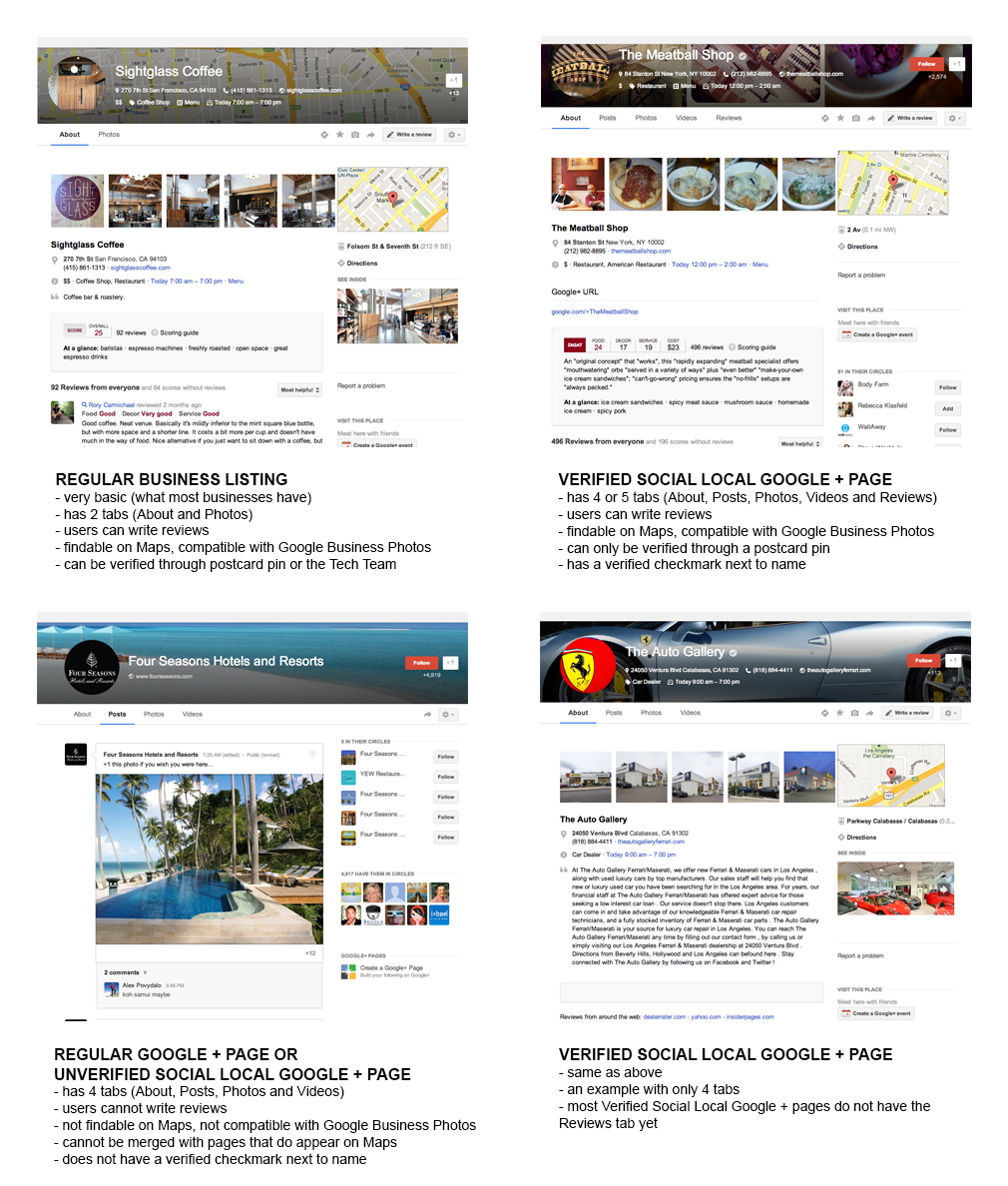 Different types of business listings.